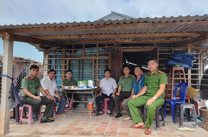 | Cán bộ, chiến sĩ Công an tỉnh vận động người dân huyện Tuy An tích cực tham gia phong trào Toàn dân bảo vệ an ninh Tổ quốc. Ảnh: THIÊN Ý |