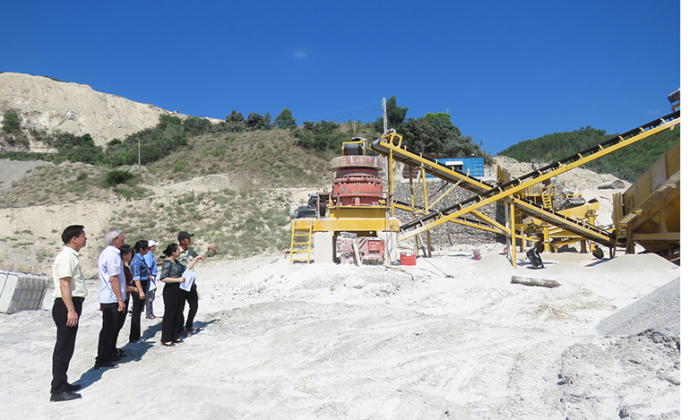 | Đoàn giám sát của Ủy ban MTTQ tỉnh giám sát tác động môi trường của một mỏ khai thác khoáng sản trên địa bàn TX Sông Cầu. Ảnh: THÚY HẰNG |
