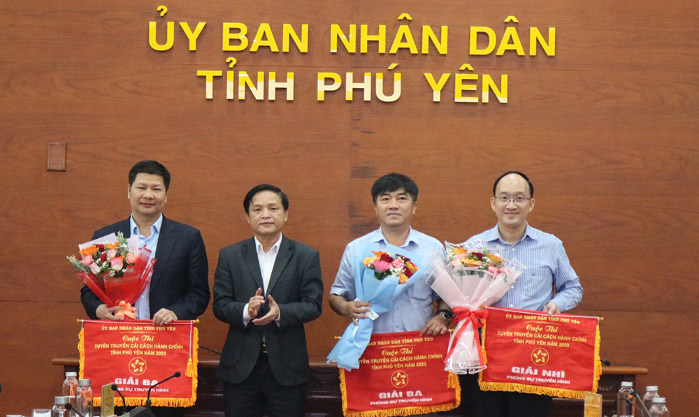 | UBND tỉnh trao giải cuộc thi Tuyên truyền CCHC. Ảnh: THÙY THẢO |
