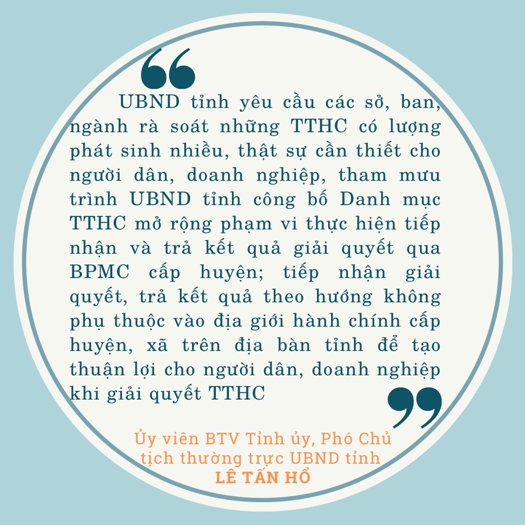 Đề án đổi mới, nâng cao hiệu quả hoạt động của BPMC các cấp trên địa bàn tỉnh, gồm: Tổ chức lại BPMC theo nguyên tắc “Mỗi địa bàn hành chính cấp xã chỉ có một BPMC nhưng không làm thay đổi, ảnh hưởng đến thẩm quyền giải quyết TTHC”; Mở rộng phạm vi thực hiện việc tiếp nhận và trả kết quả giải quyết TTHC cho BPMC cấp huyện; Thực hiện việc tiếp nhận và trả kết quả giải quyết TTHC theo hướng không phụ thuộc vào địa giới hành chính cấp huyện, xã trên địa bàn tỉnh. Qua hơn một năm triển khai thực hiện đã đạt được những kết quả tích cực. Đó là, cắt giảm được 9 BPMC của UBND cấp xã (còn 101/110 xã, phường, thị trấn); người dân, tổ chức có thể đến bất cứ BPMC nào trên địa bàn tỉnh để giải quyết hồ sơ, TTHC mà không giới hạn về thẩm quyền, đơn vị hành chính quản lý đối với bộ danh mục TTHC được UBND tỉnh phê duyệt; tỉ lệ hồ sơ phát sinh trực tuyến, thanh toán trực tuyến và cấp kết quả điện tử được cải thiện rõ rệt hơn so với các năm trước đây…